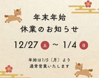 年末年始休業のお知らせ